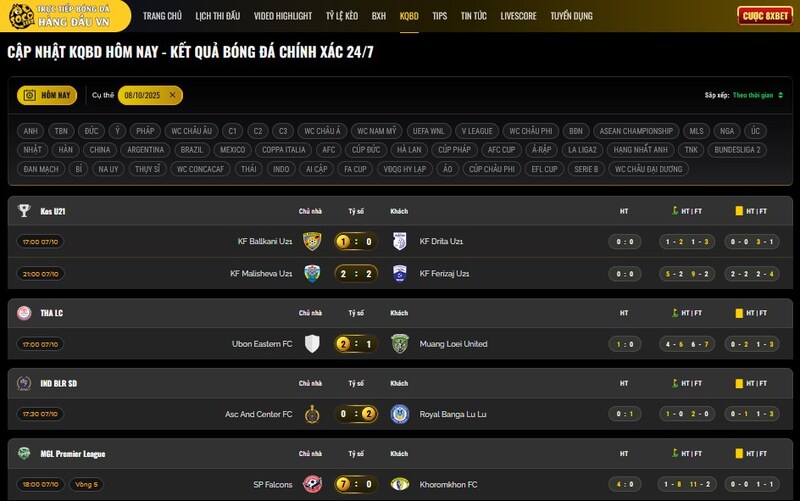 • Kết quả và bảng xếp hạng update real-time.