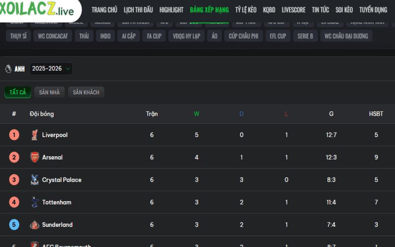 Một bảng xếp hạng tiêu chuẩn chỉ cung cấp điểm số, số trận thắng/hòa/thua. Nhưng tại XoilacTV, thông tin được cung cấp ở mức độ sâu hơn, phục vụ tối đa cho nhu cầu phân tích: